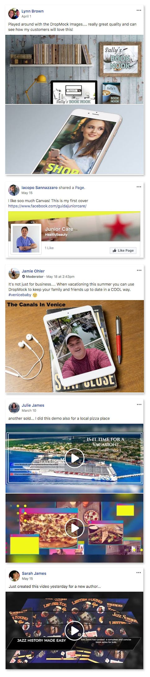 I have been a Dropmock fan for years. The main two reasons are easy of use and professional creative content. You can't get easier than drop and drag, their platform allows me and my businesses to look credible to my target market without spending hours of valuable time producing amazing visual content. I can now easily outsource content creation without worry! Now the absolutely best part of Dropmock is the ever-growing professionally created content. The reality is they have a full video production crew that goes out on a monthly basis and create from scratch content for their template club. Imagine having your own personal video production team tucked away in your business creating new fresh professional content on a monthly basis. Most can't afford that, and with Dropmock you don't have to. All I have to say is "Simply Awesome"!